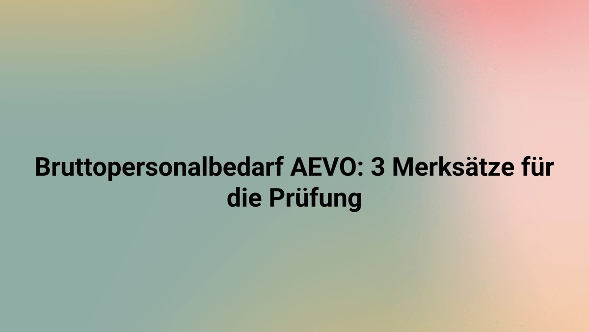 Du sitzt in der AEVO-Prüfung. Die Aufgabe lautet: „Ihr Betrieb plant, die Produktion um 30% zu erhöhen. Berechnen Sie den Bruttopersonalbedarf." Du starrst auf die Zahlen. Dein Puls steigt. Bruttopersonalbedarf? War das nicht der Nettopersonalbedarf? Oder der Einsatzbedarf? Du rätst zwischen den Formeln. Zeit läuft ab. Du kreuzt irgendeine Antwort an – und liegst falsch. Diese Unsicherheit kostet dich wertvolle Punkte.