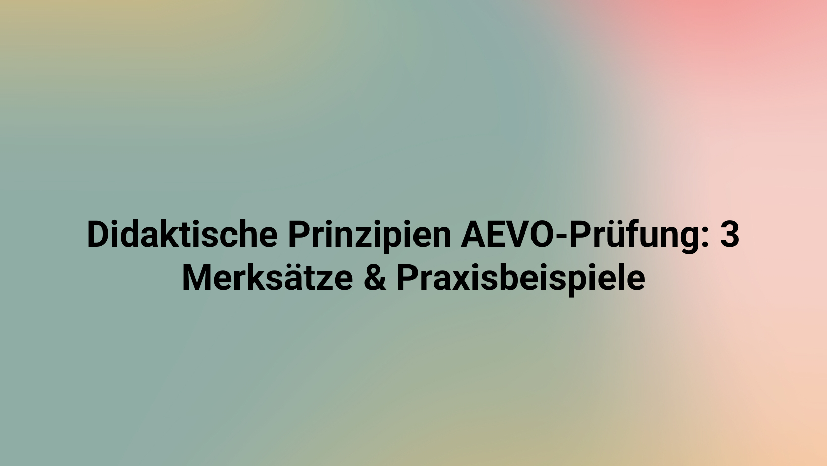 In der AEVO-Prüfung wird geprüft, ob du diese Prinzipien verstehst und anwenden kannst. Im schriftlichen Teil kommen Multiple-Choice-Fragen wie: „Welches Prinzip liegt hier vor?" In der praktischen Prüfung musst du die Prinzipien in deiner Unterweisung umsetzen. Im Fachgespräch musst du begründen: „Warum habe ich diese Prinzipien gewählt?"