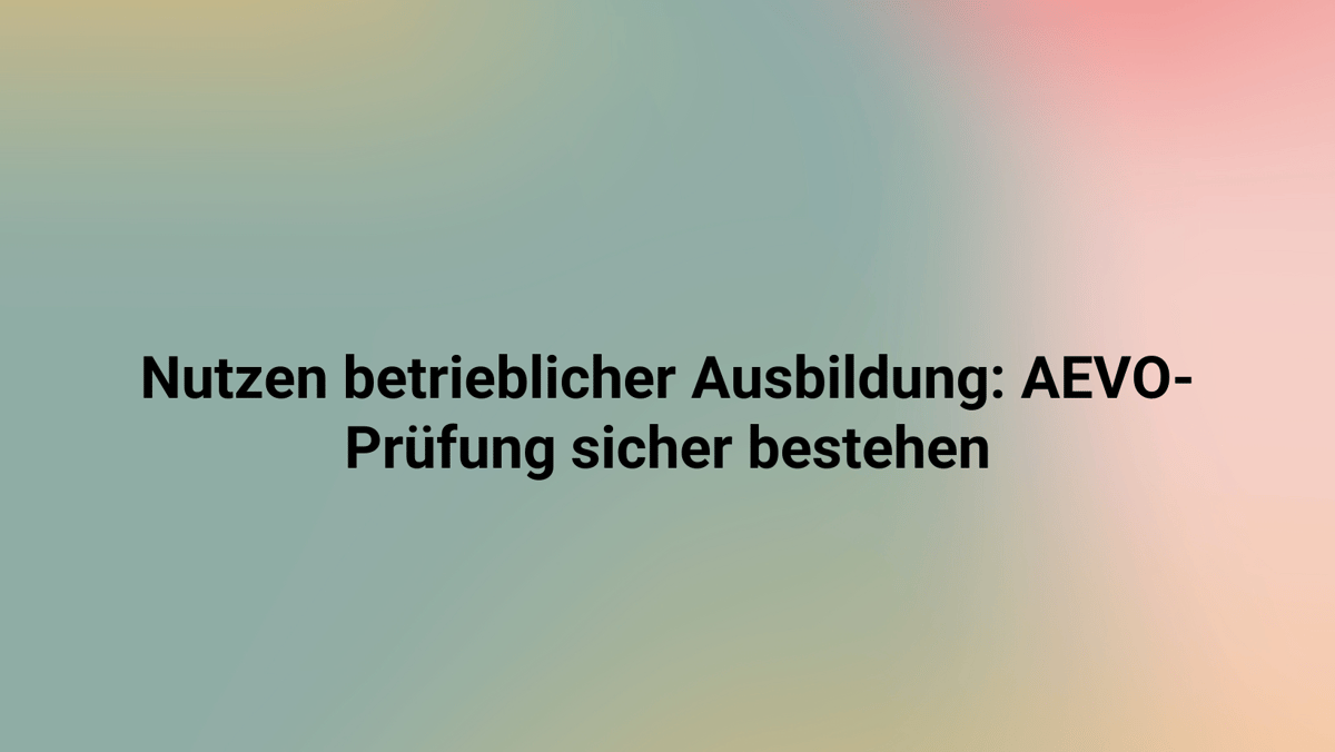 - In der AEVO-Prüfung musst du den Nutzen in Handlungsfeld 1 und 2 begründen – mit konkreten Beispielen, Kosten-Nutzen-Argumenten und Bezug zum BBiG.