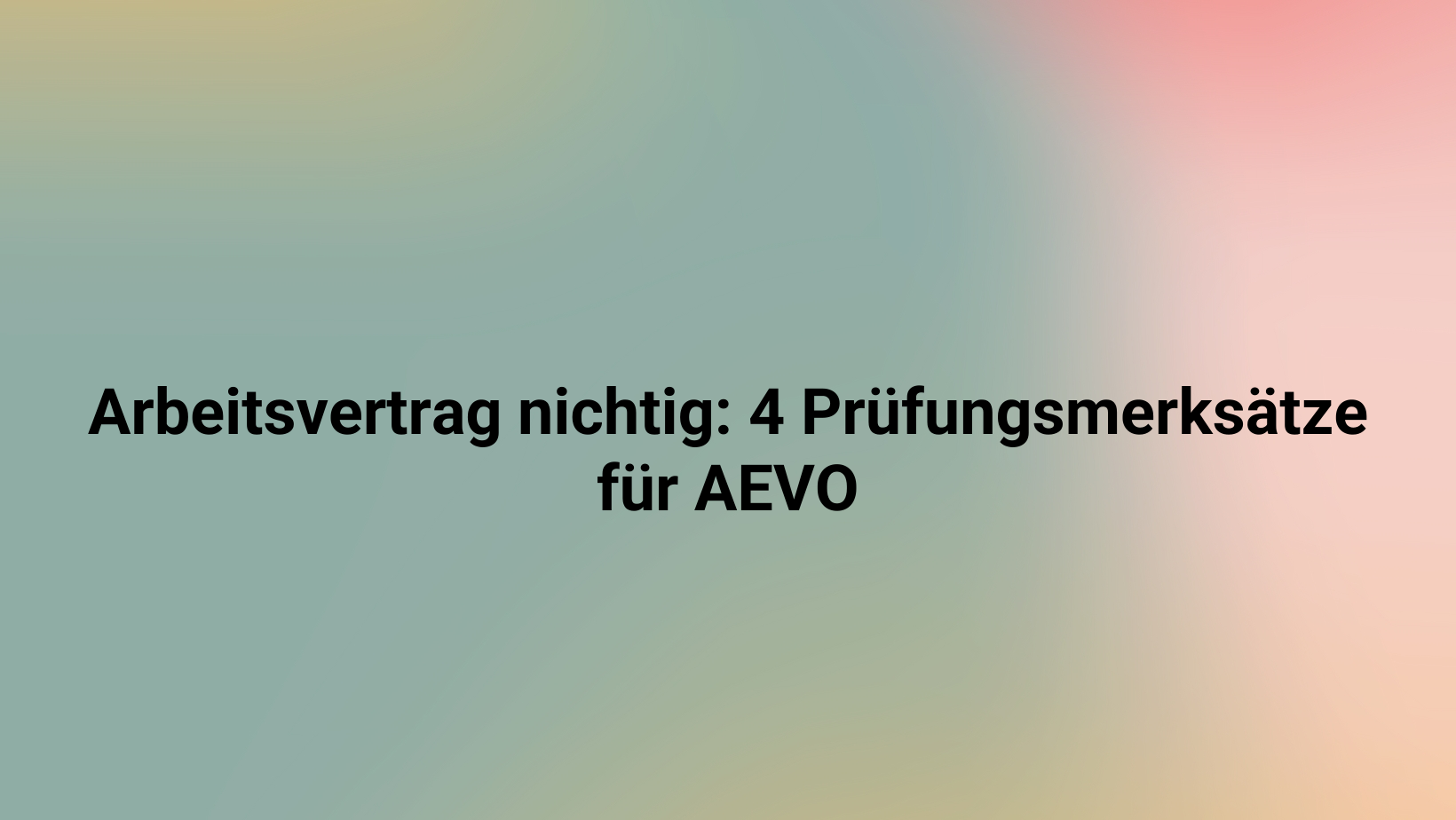 Stell dir vor: Du sitzt in der AEVO-Prüfung und eine Frage taucht auf: „Wann ist ein Arbeitsvertrag nichtig?" Du überlegst kurz – und dann kommt die Unsicherheit. War das der Fehler mit der kurzen Ausschlussfrist? Oder ging es um Mindestlohn? Vielleicht auch Sittenwidrigkeit? Du rätst – und liegst falsch. Diese Unklarheit kostet dich wertvolle Punkte. Dabei ist das Thema gar nicht schwer, wenn du die vier Grundregeln kennst.
