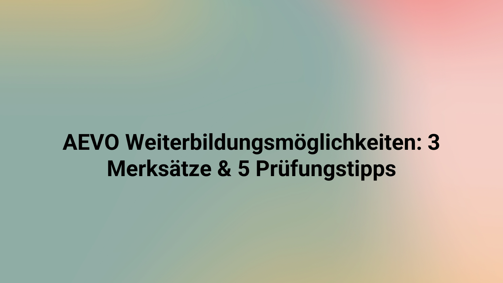 In diesem Artikel erfährst du, was Weiterbildungsmöglichkeiten im AEVO-Kontext bedeuten und wie du sie von Pflichtausbildung unterscheidest. Ich zeige dir sechs konkrete Praxisbeispiele aus verschiedenen Berufen – vom Industriemechaniker bis zur Hotelfachfrau. Außerdem bekommst du drei Merksätze und fünf Prüfungstipps, mit denen du jede Weiterbildungsfrage in der AEVO-Prüfung sicher beantwortest und dich entspannt fühlst.